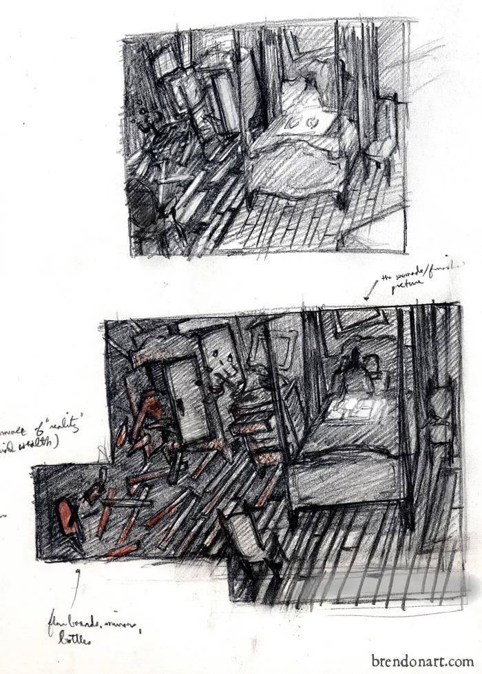 Above: two of the preliminary drawings exploring possibilities for the space.